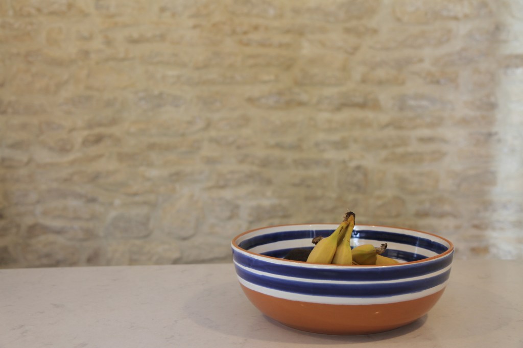 The thing with wood chip is that when you strip it off, whatever is behind tends to fall off as well. We have a lot of this stuff at home, possibly holding up the walls! When we first moved in my sister and I were in one of the bedrooms. She said, well at least there isn’t any wood chip in this room, I said look up… The ceiling is covered in it. In the kitchen we ended up peeking through chunks of plaster that had come away with the wallpaper to a beautiful stone wall behind. We decided to reveal it all and had it pointed up by a friend of mine who did a fantastic job. It looks stunning and is a focal point of the room. We didn’t want to put any units on this wall and thus narrowed our wiggle room in our kitchen design even further.