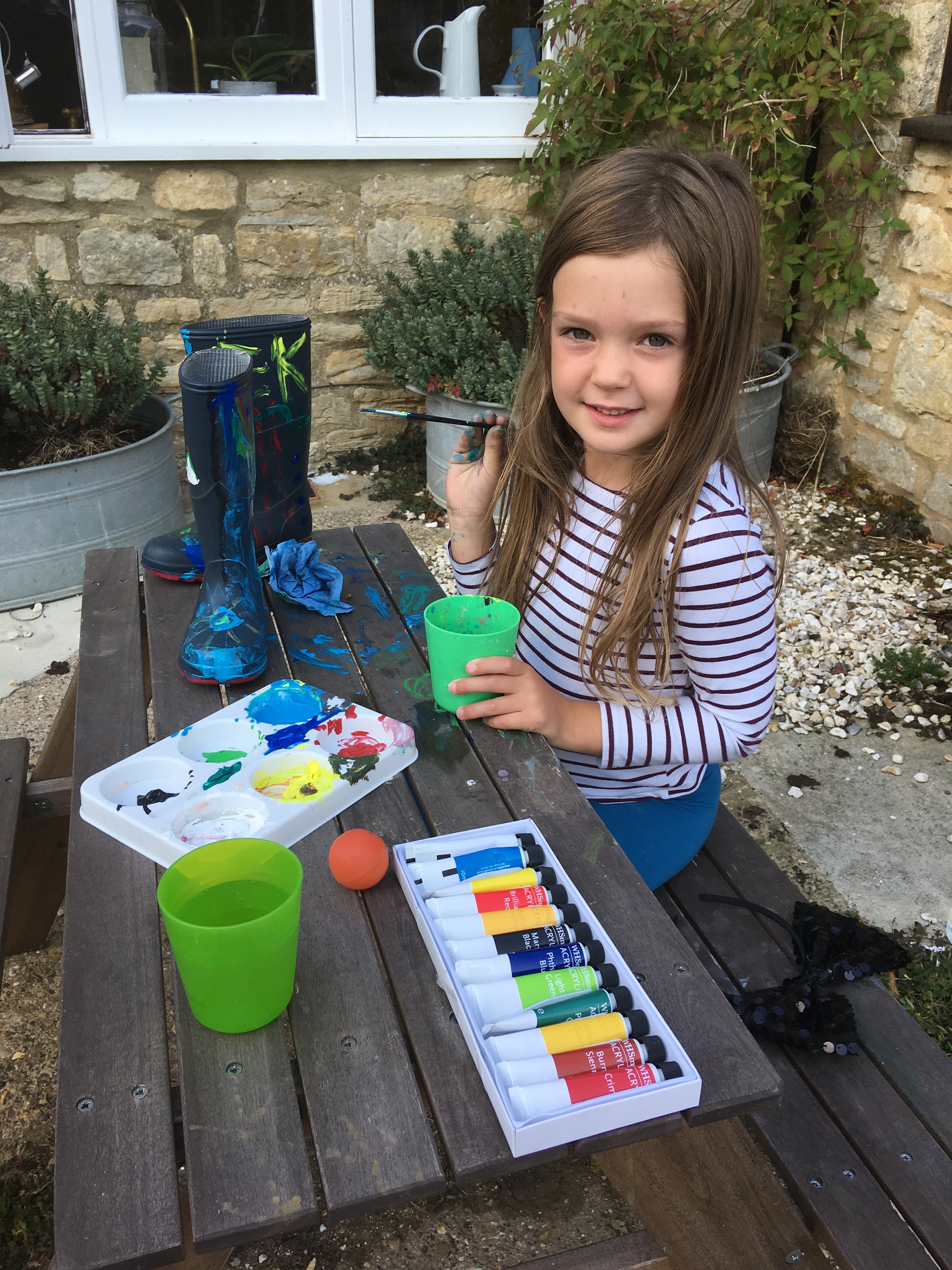 When out on walks I don’t get them to skirt the mud I give them points for the muddiest boots and we don’t worry about it. In fact on a relatively fine day, any activity that could be deemed in any way messy can simply go outside, so if the kids want to paint, they can do it outside. If they want to make volcanos out of bicarb and vinegar, definitely outside! You can buy cute child size picnic tables like the ones you see in pub gardens but miniature. These are really inexpensive and we now do all slime squishing, painting and any other fun that could be thought of as slightly grotty in the garden at their table.