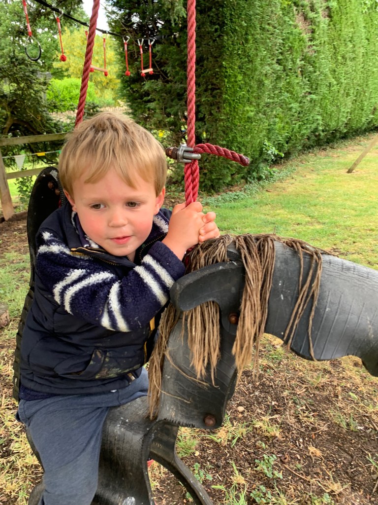 When we were kids we had so many great spots with tyre swings, over streams and embankments, in huge old oak trees. We had BMX bikes we would ride all over the countryside to our favourite haunts. I fell in love with an up-cycled tyre swing fashioned into a horse and eventually found it at a good price and snapped it up.