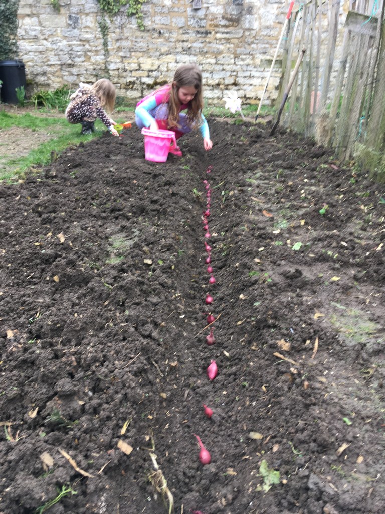 Trying to plant anything with the kids is hilarious and mad cap. They absolutely love it and I’ve come to realise that a few quid on packets of seeds is a great cheap way to entertain them but….. it seems highly unlikely that anything will actually grow, other than weeds of course. We have a LOT of weeds. We’ve had some great fun with carrot seeds. My two will go through a packet of 2000 carrot seeds in no time. I have introduced the idea of drawing a line (drill) and placing teeny tiny little pinches of seed neatly along the line, just like we see Monty Don do it on Gardeners’ World, but it’s just not going to happen. Chuck all 2000 on the floor is the only method for us for a few years I reckon and I’m OK with it.