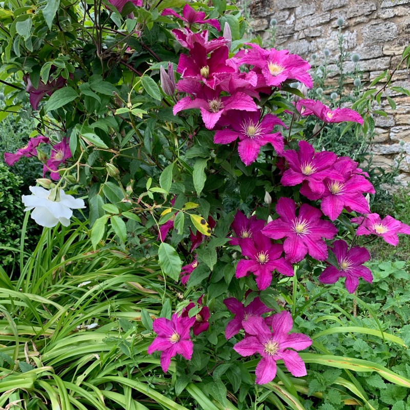 This is the first year in the garden when I’ve truly wondered what clematis I have. It sounds a bit mad, but there are maybe half a dozen clematis here and I don’t know what most of them are. This leads to pruning quandaries and for the first time looking back through dozens of pictures…
