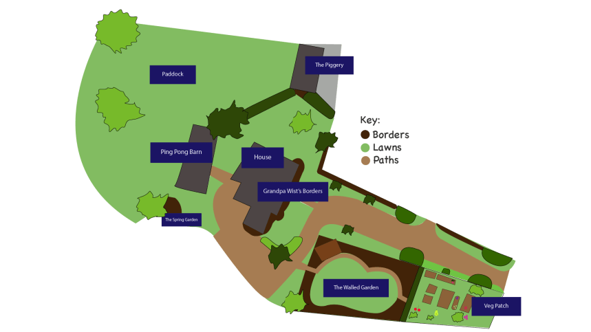 This page is my best attempt at a sketch of the whole garden. I find having this pretty helpful now. If I compartmentalise each section I can get around it all in endless happy loops.